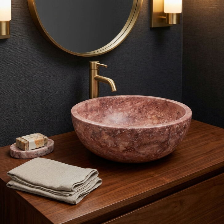 Kırmızı Traverten Honlu Çanak Lavabo NTRVS15