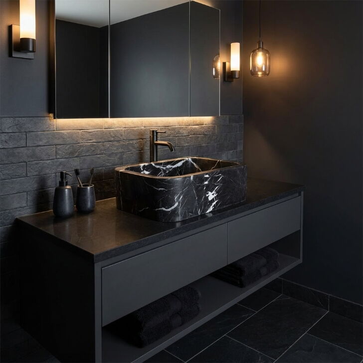 Toros Siyah Cilalı Duvara Montaj Mermer Lavabo NTRVS222
