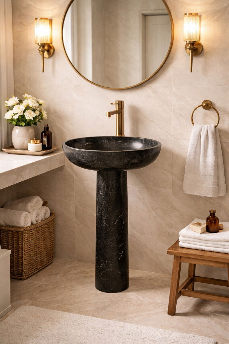 Toros Siyah Mermer Cilalı Ayaklı Lavabo NTRVS04