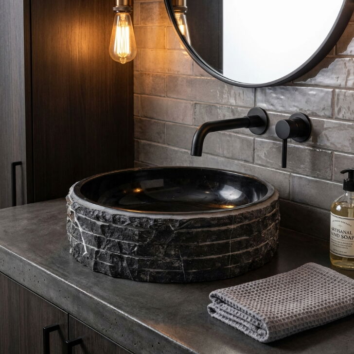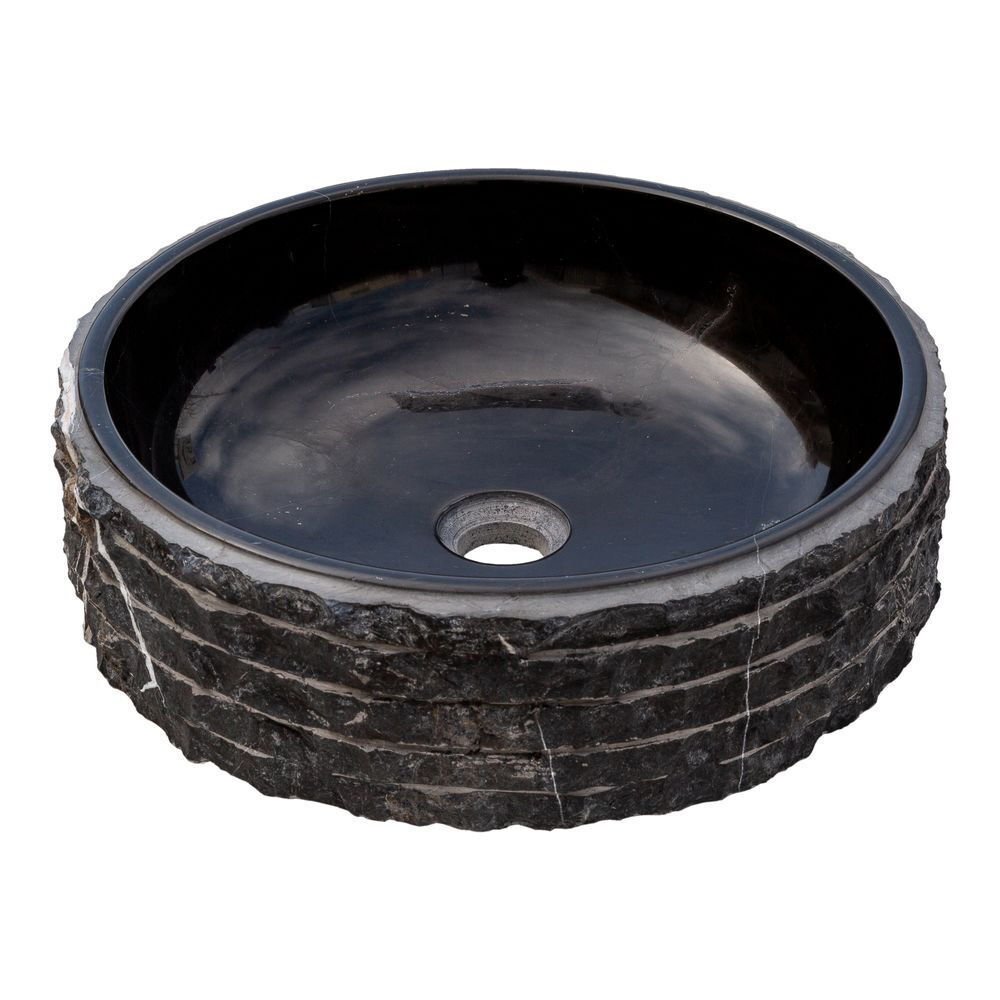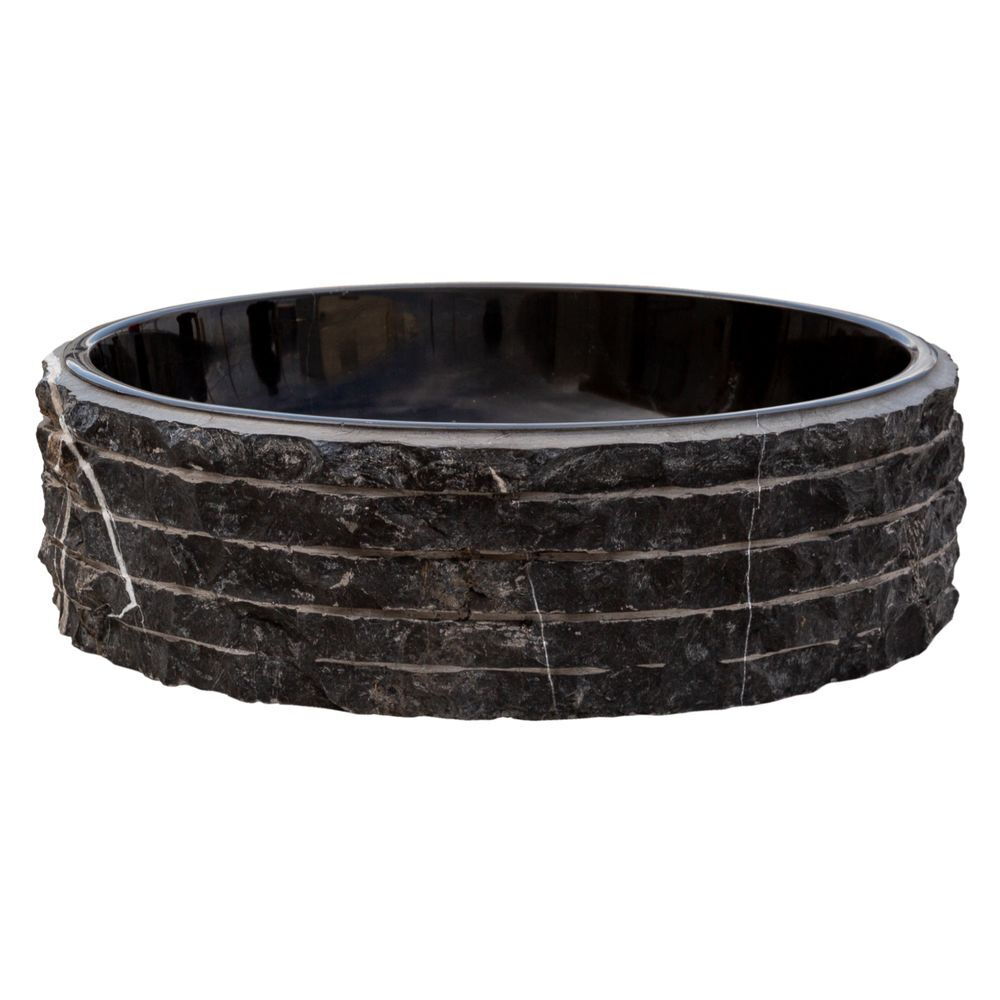 Toros Siyah Mermer Rustik El Yapımı Patlatma Taramalı Çanak Lavabo EGENTBM1675