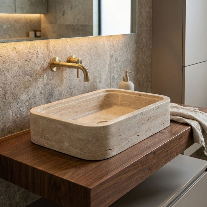 Traverten Bej Dolgulu Cilalı Lavabo NTRVS168